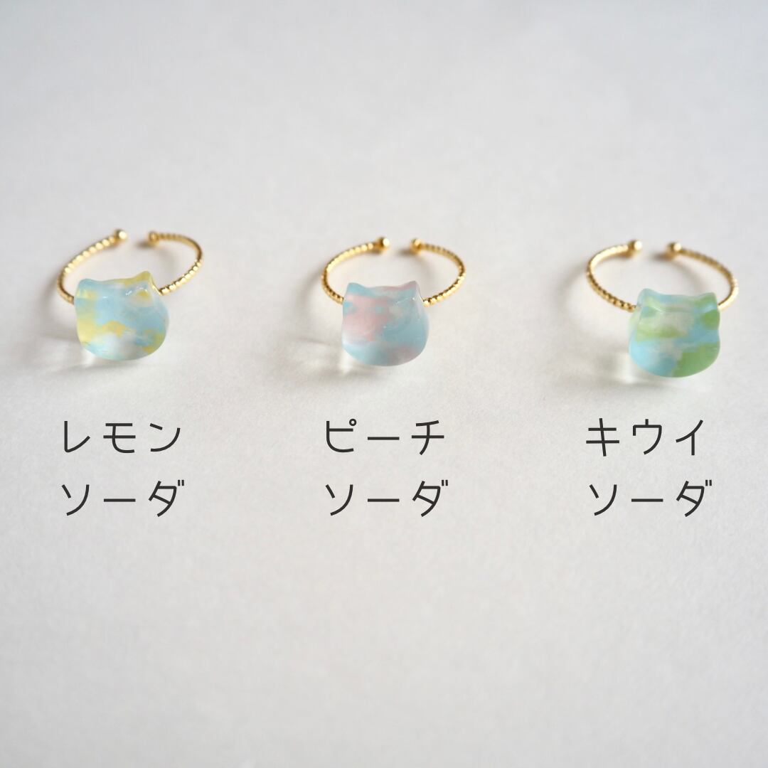 3種のフルーツソーダをイメージした、小さな子猫のリング