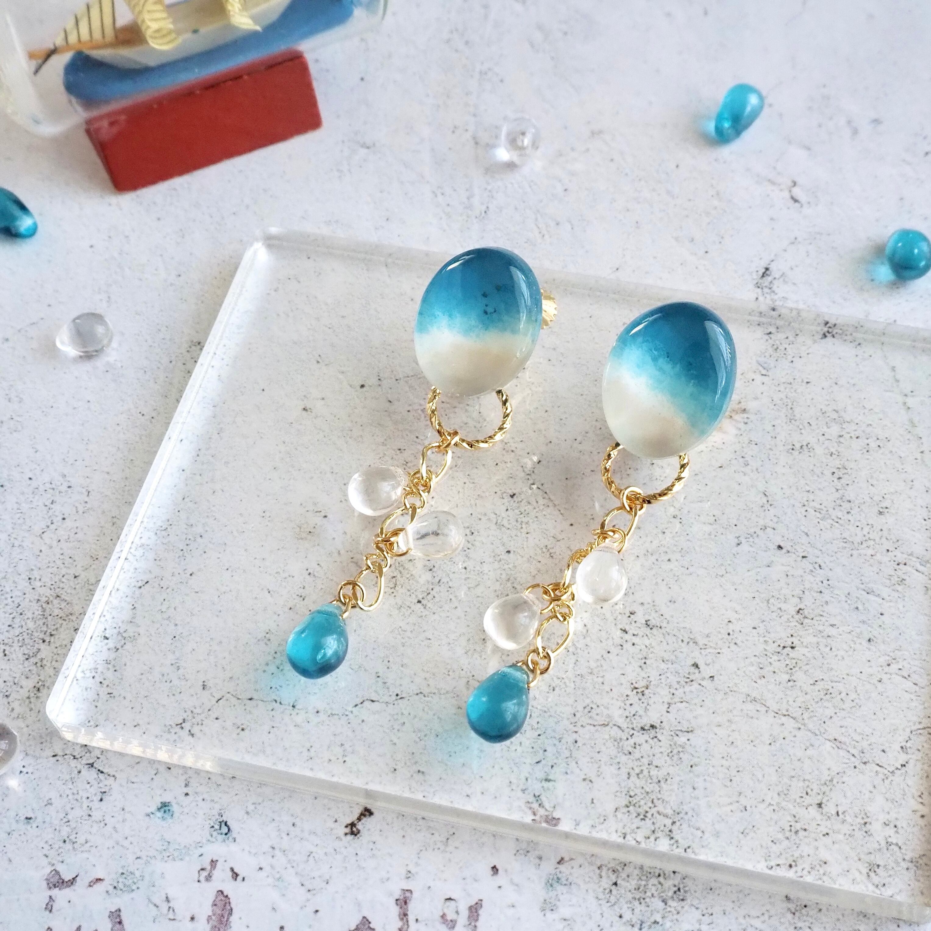 1つ1つ浜辺の波をイメージして色を付けた、夏らしさ満点のイヤリングです。