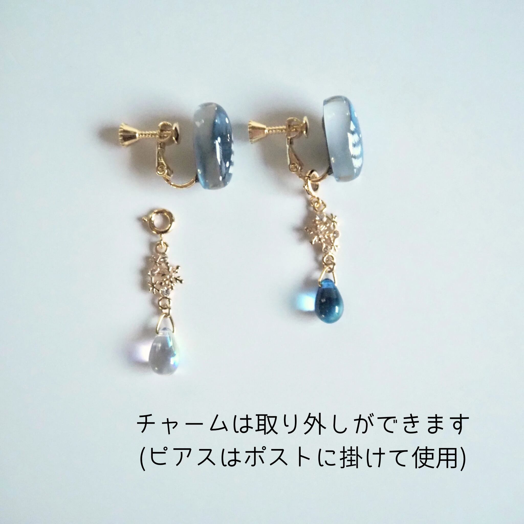 ※ピアスorイヤリングの金具部分のみニッケルフリーまたはサージカルステンレスとなります。作品に使用している丸カンなどの金具やチャーム、チェーン等はアレルギー非対応になりますのでご注意ください。