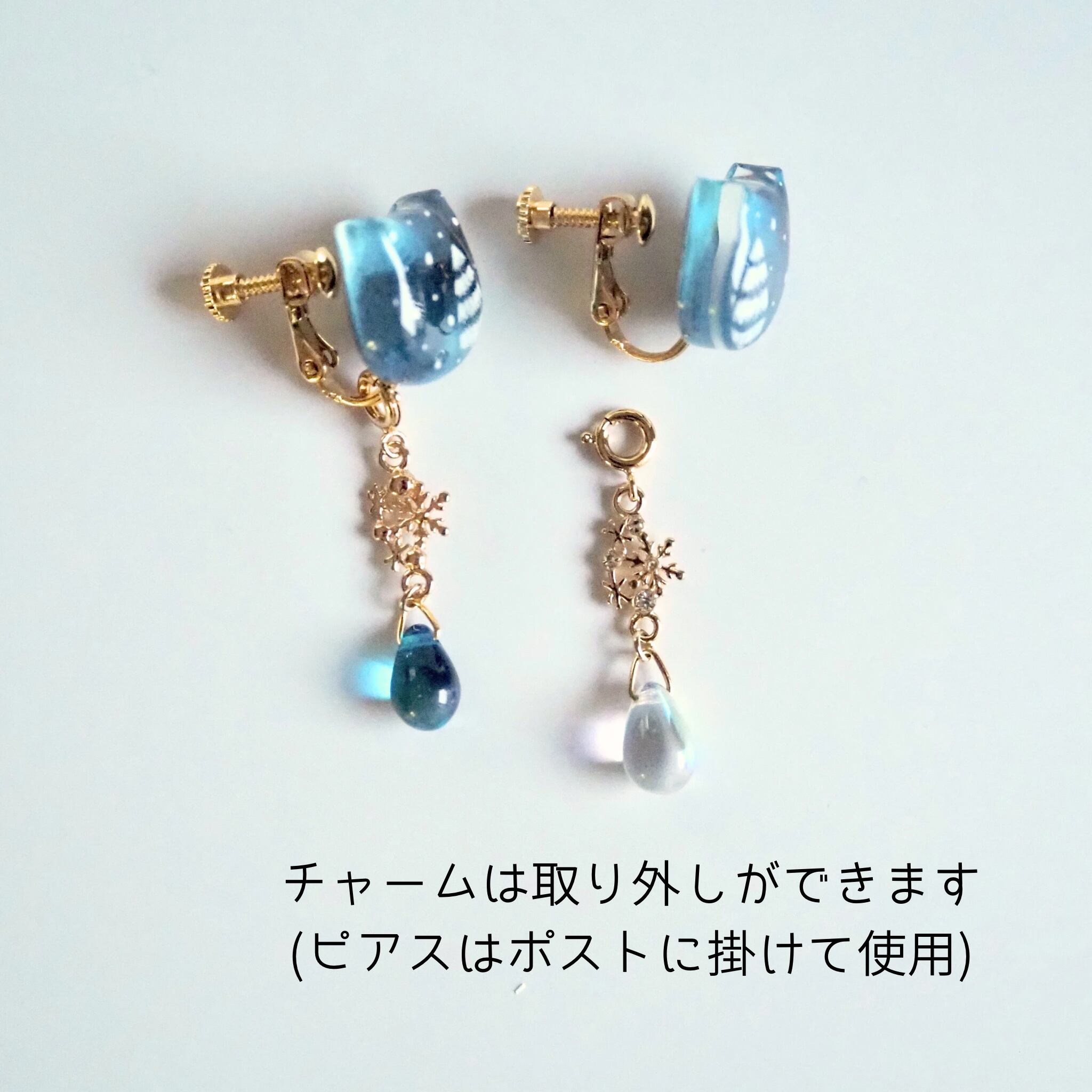 ※ピアスorイヤリングの金具部分のみニッケルフリーまたはサージカルステンレスとなります。作品に使用している丸カンなどの金具やチャーム、チェーン等はアレルギー非対応になりますのでご注意ください。