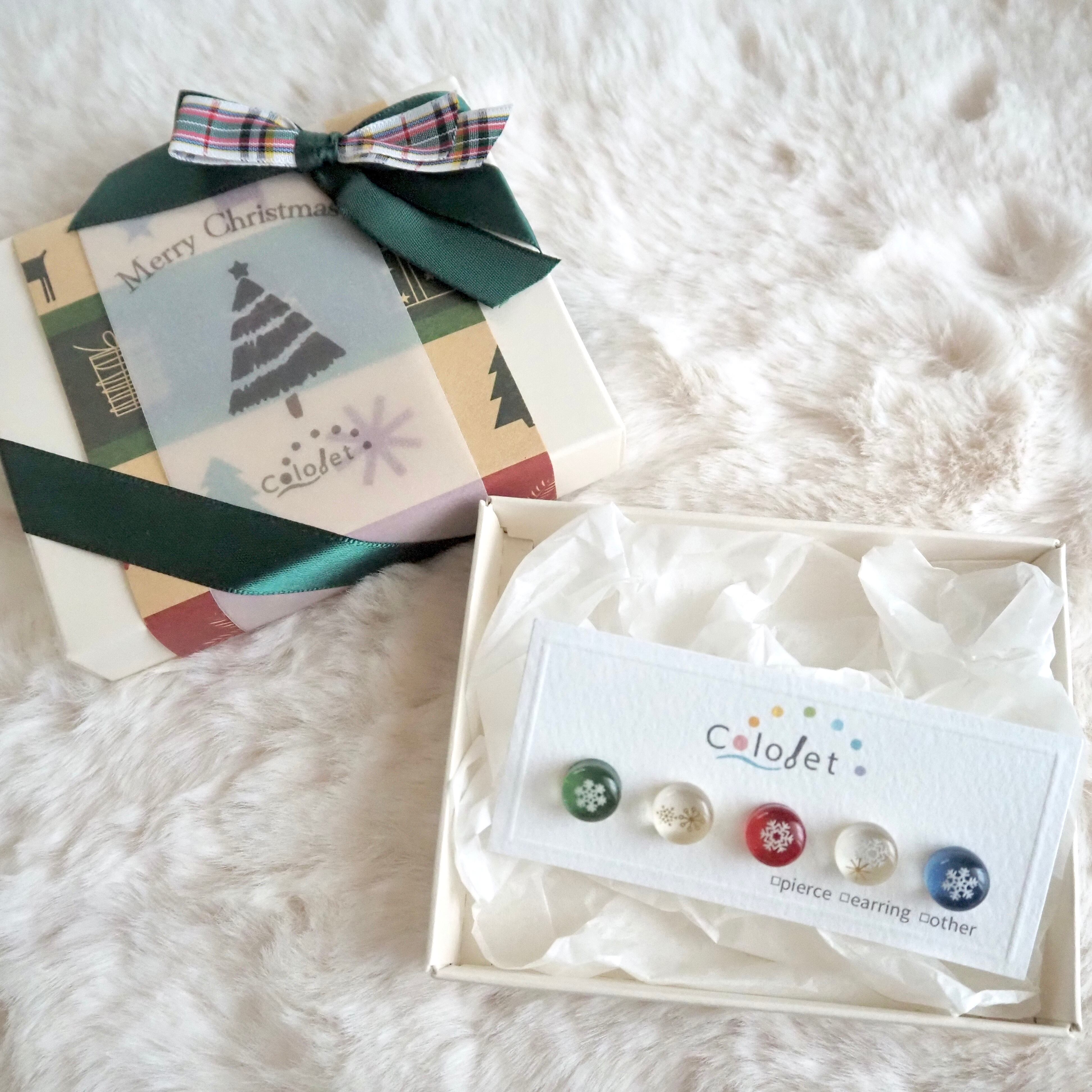 オーナメントをイメージした5粒のミニピアスセット