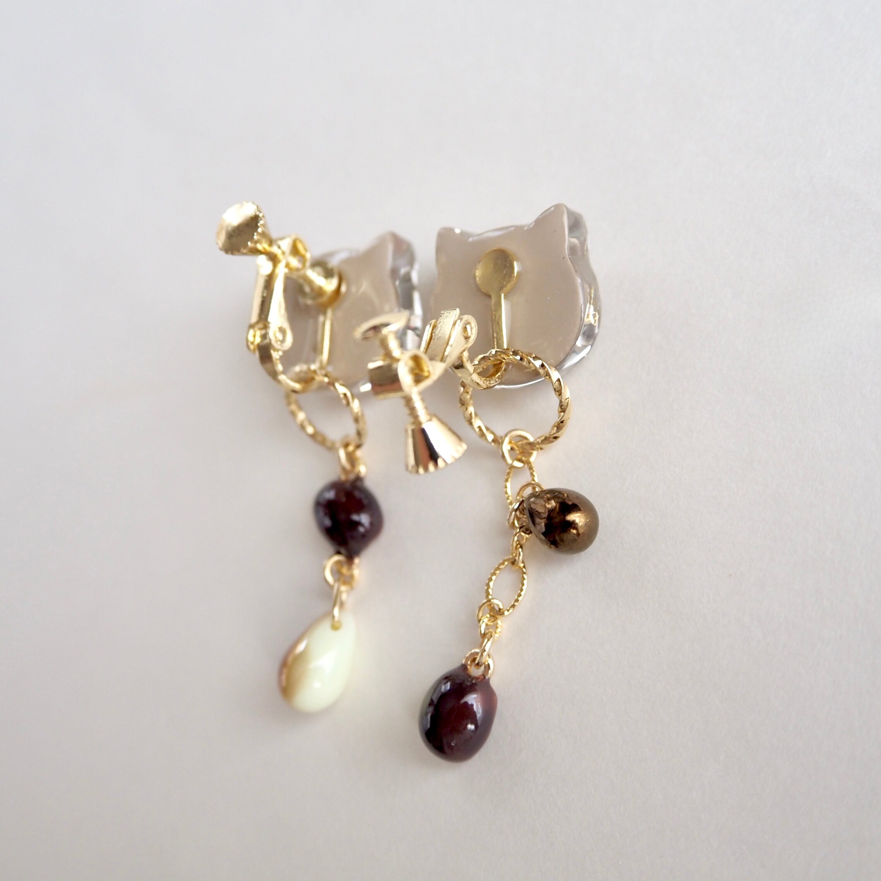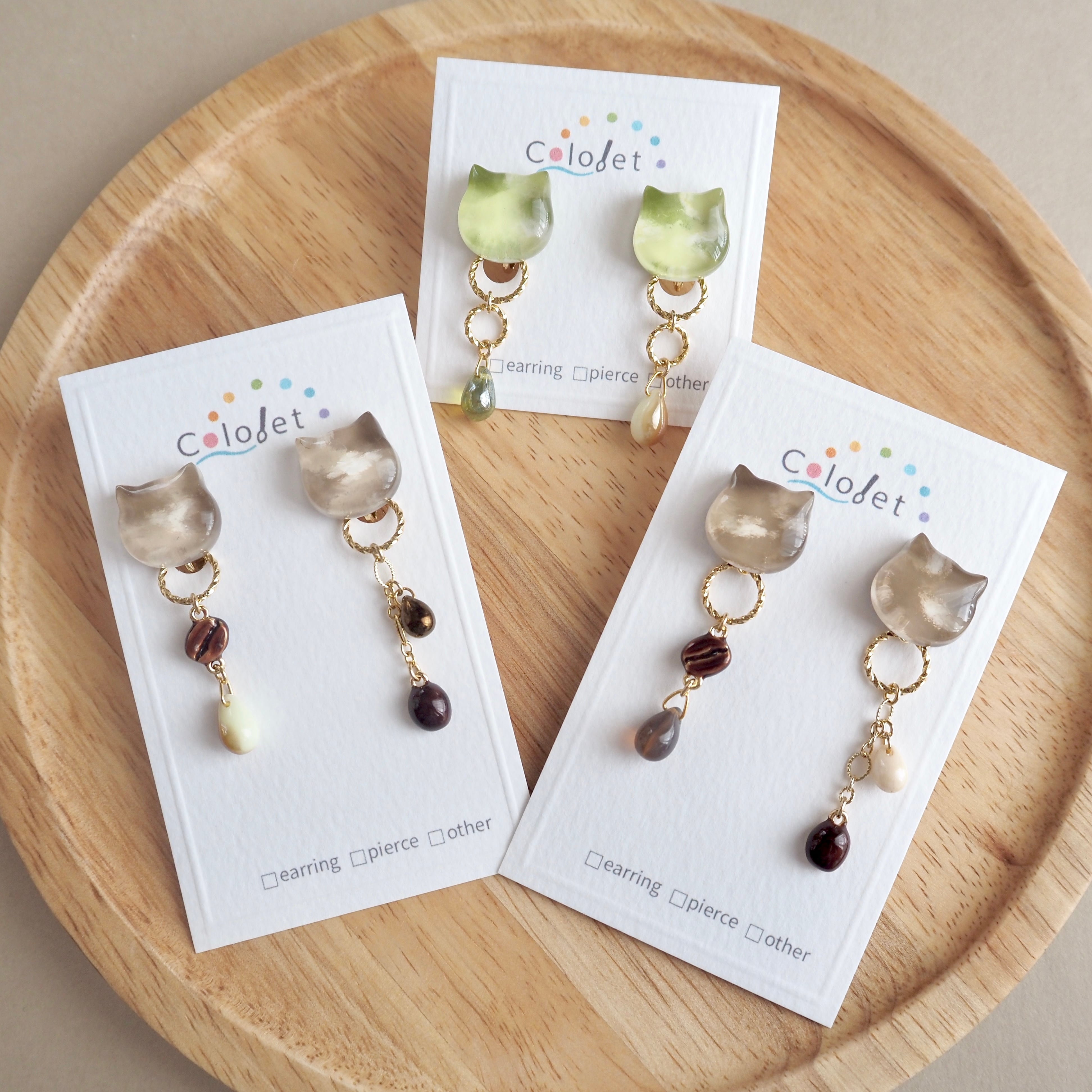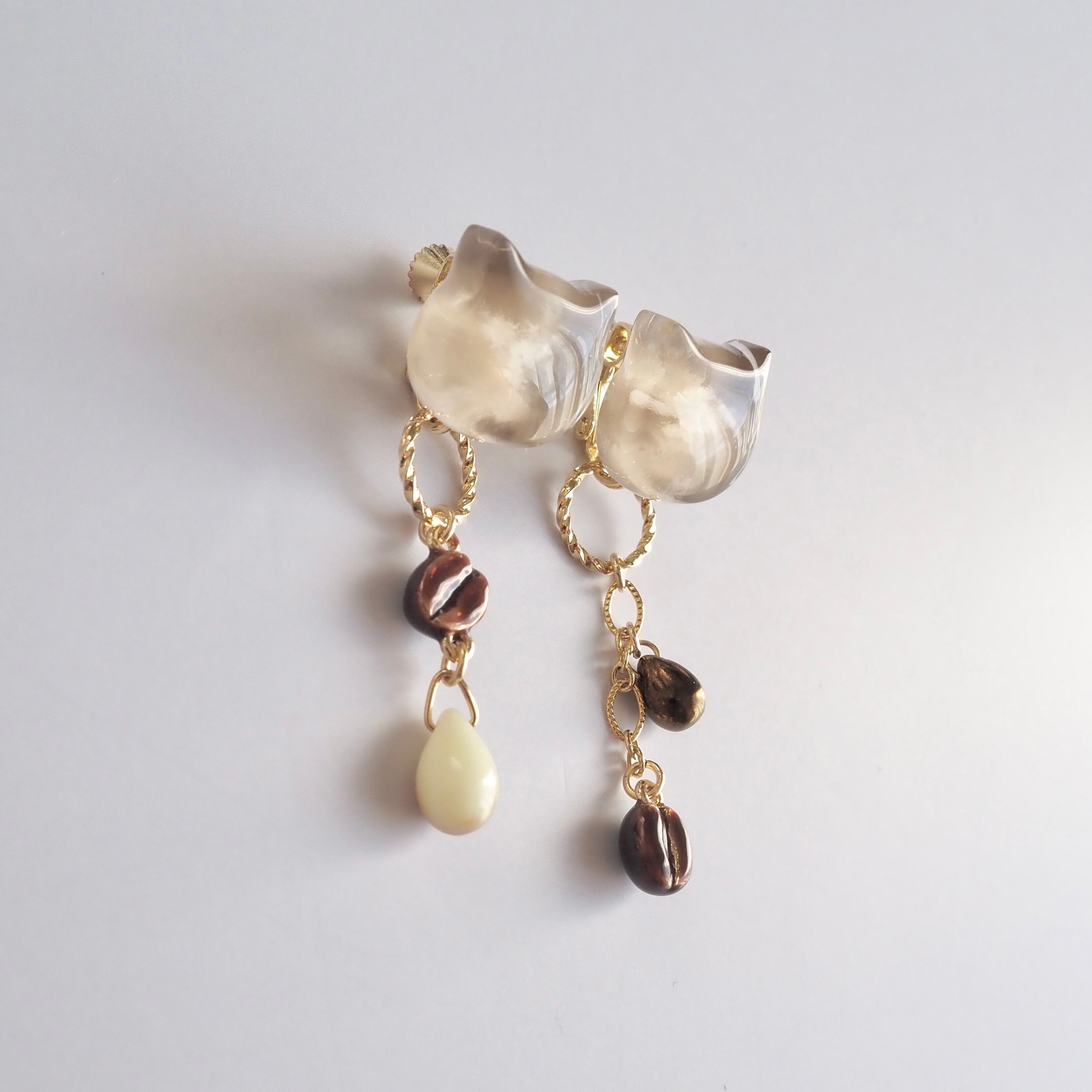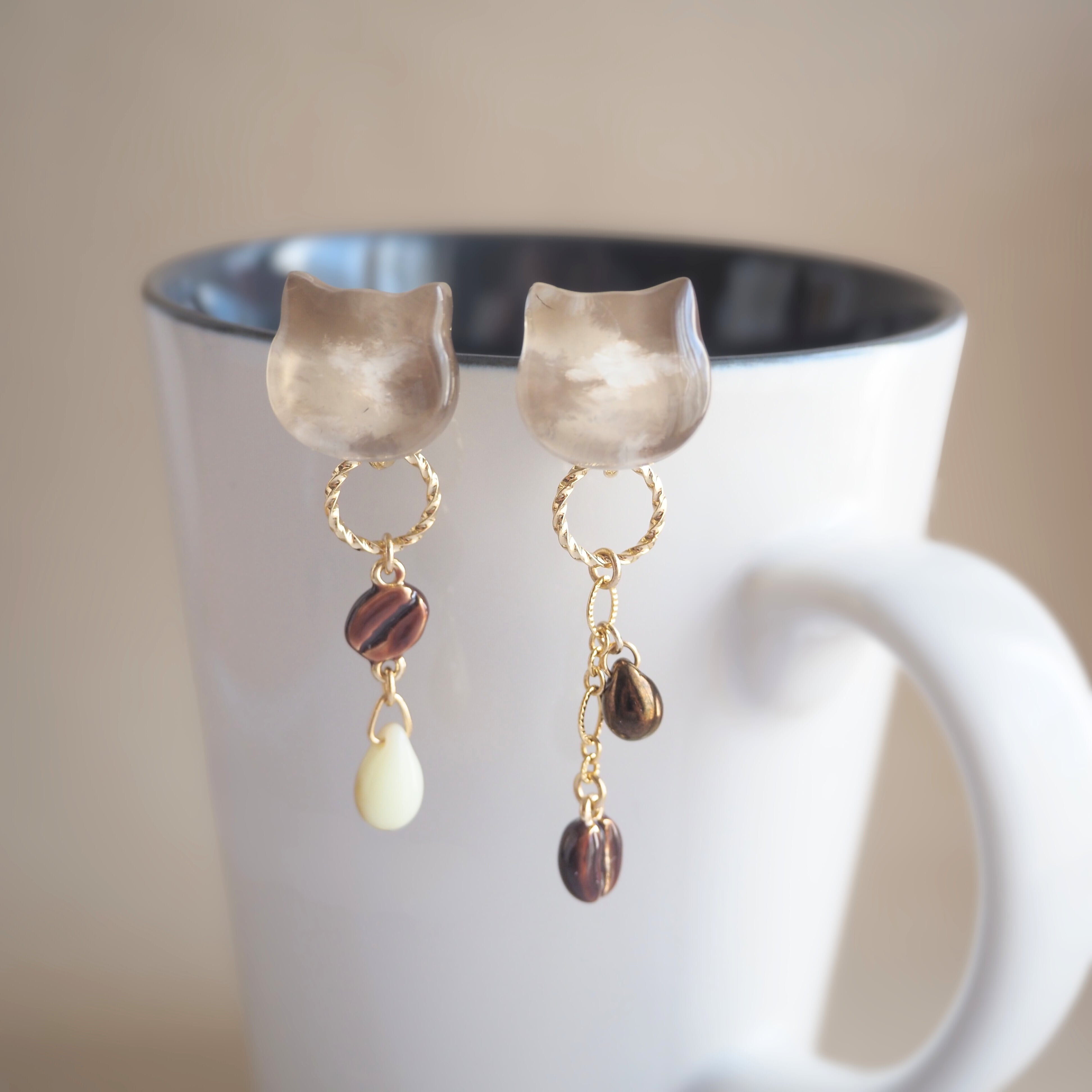 カフェラテをイメージして色を重ねた猫ちゃんのイヤリングです