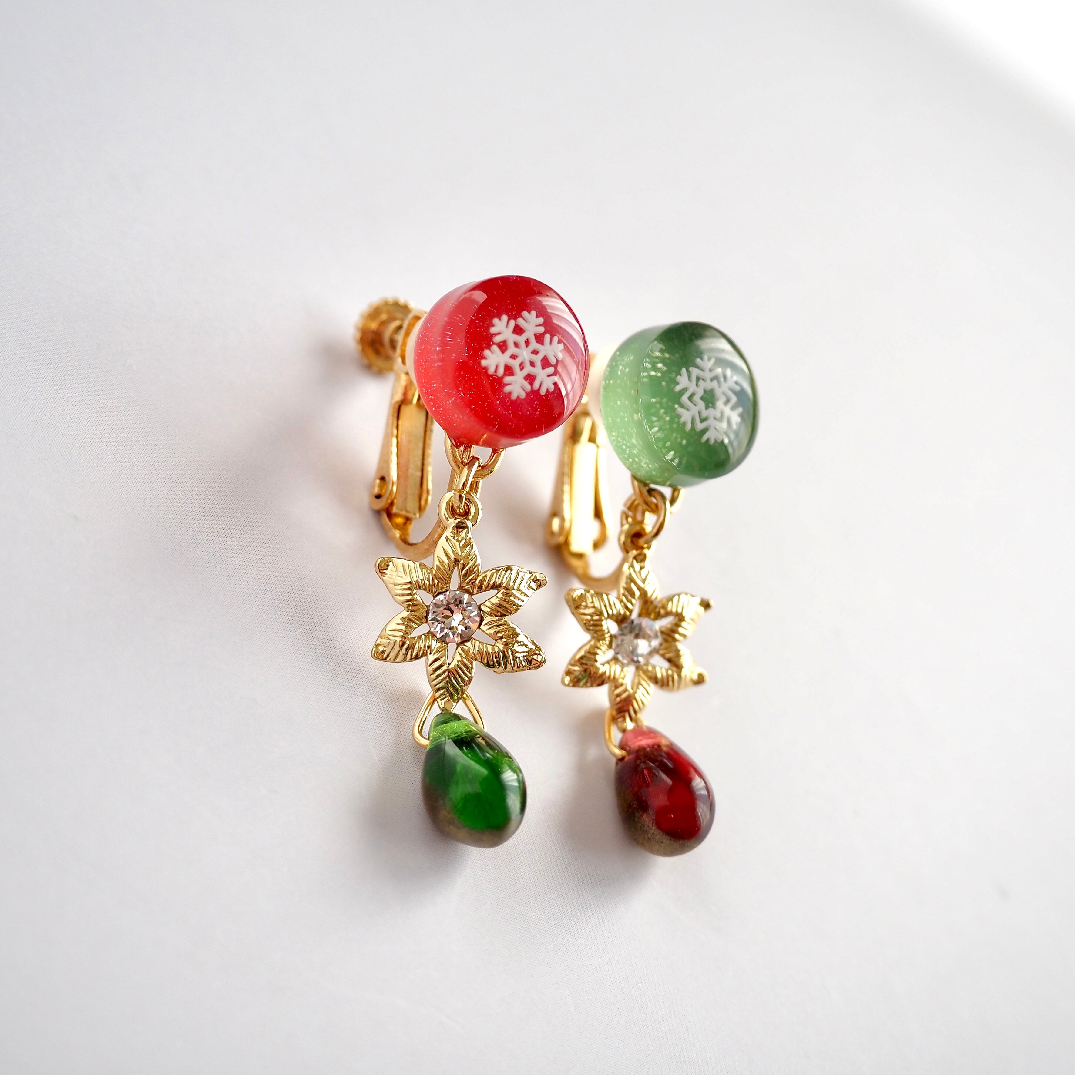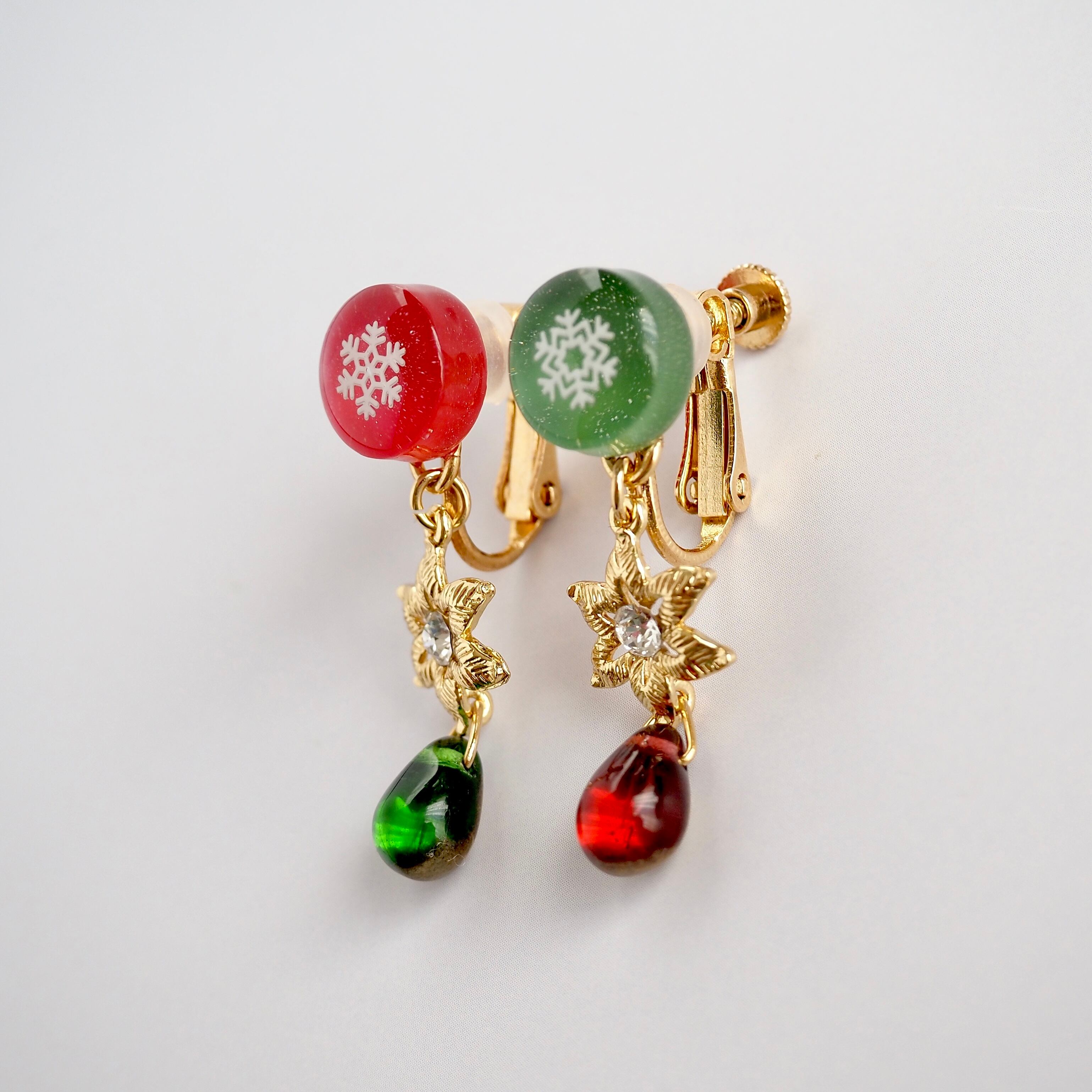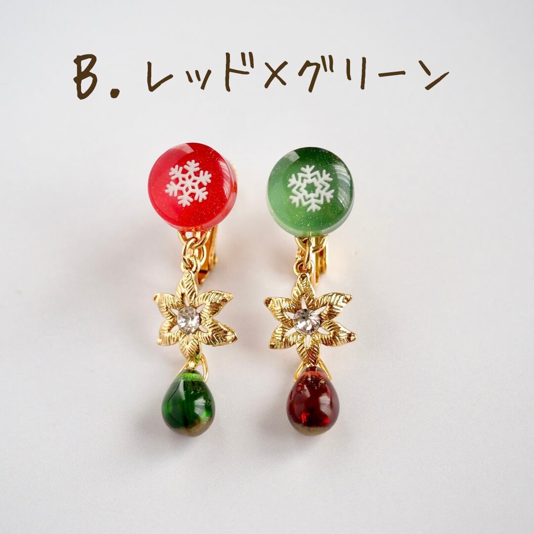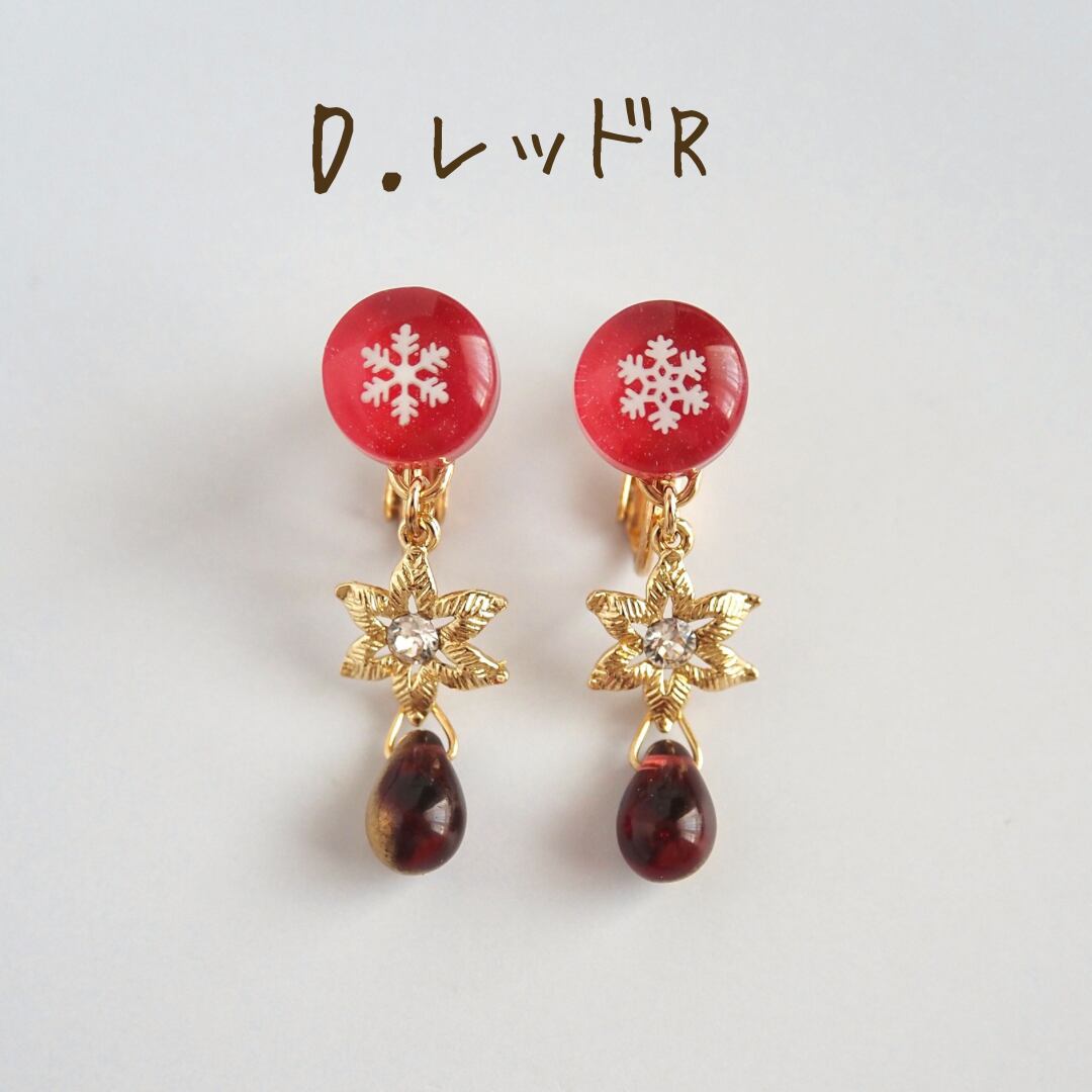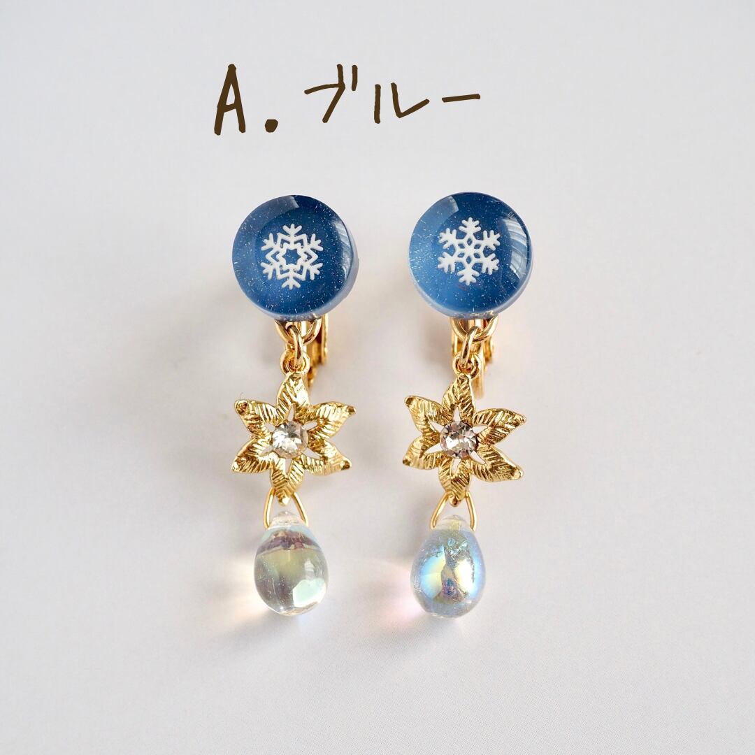❄︎イヤリングの雪の結晶の柄は3種類からおまかせで2柄お届けいたします。