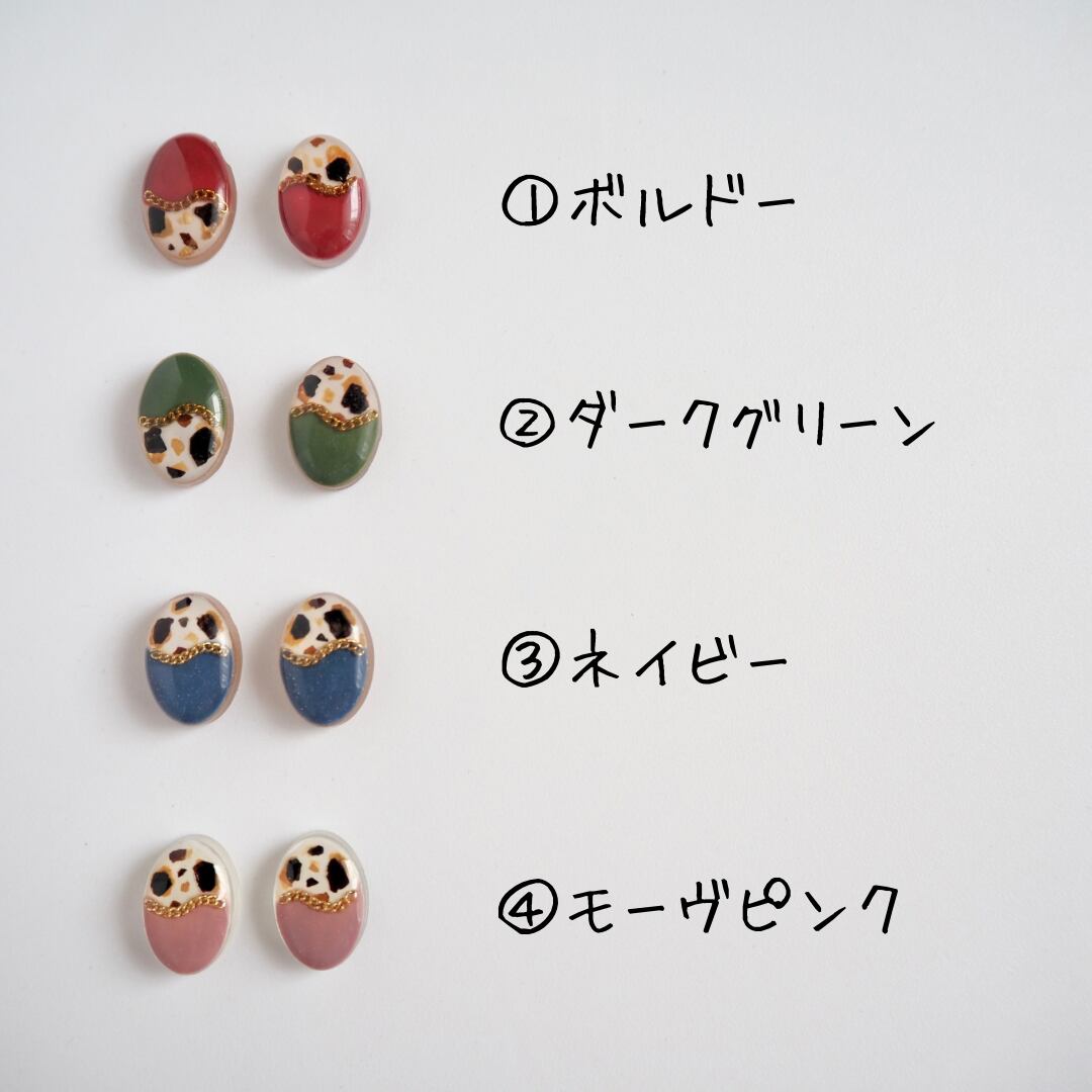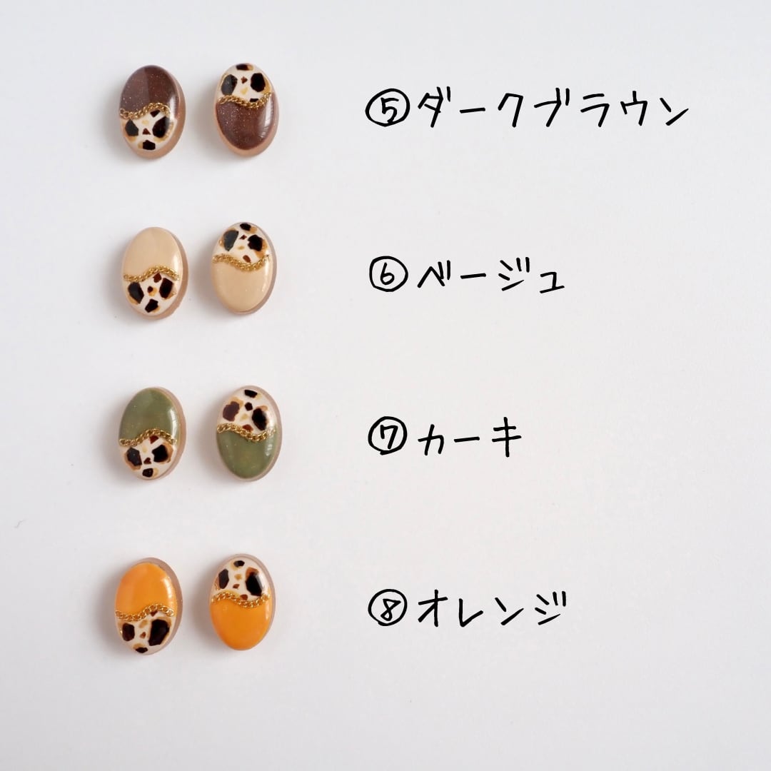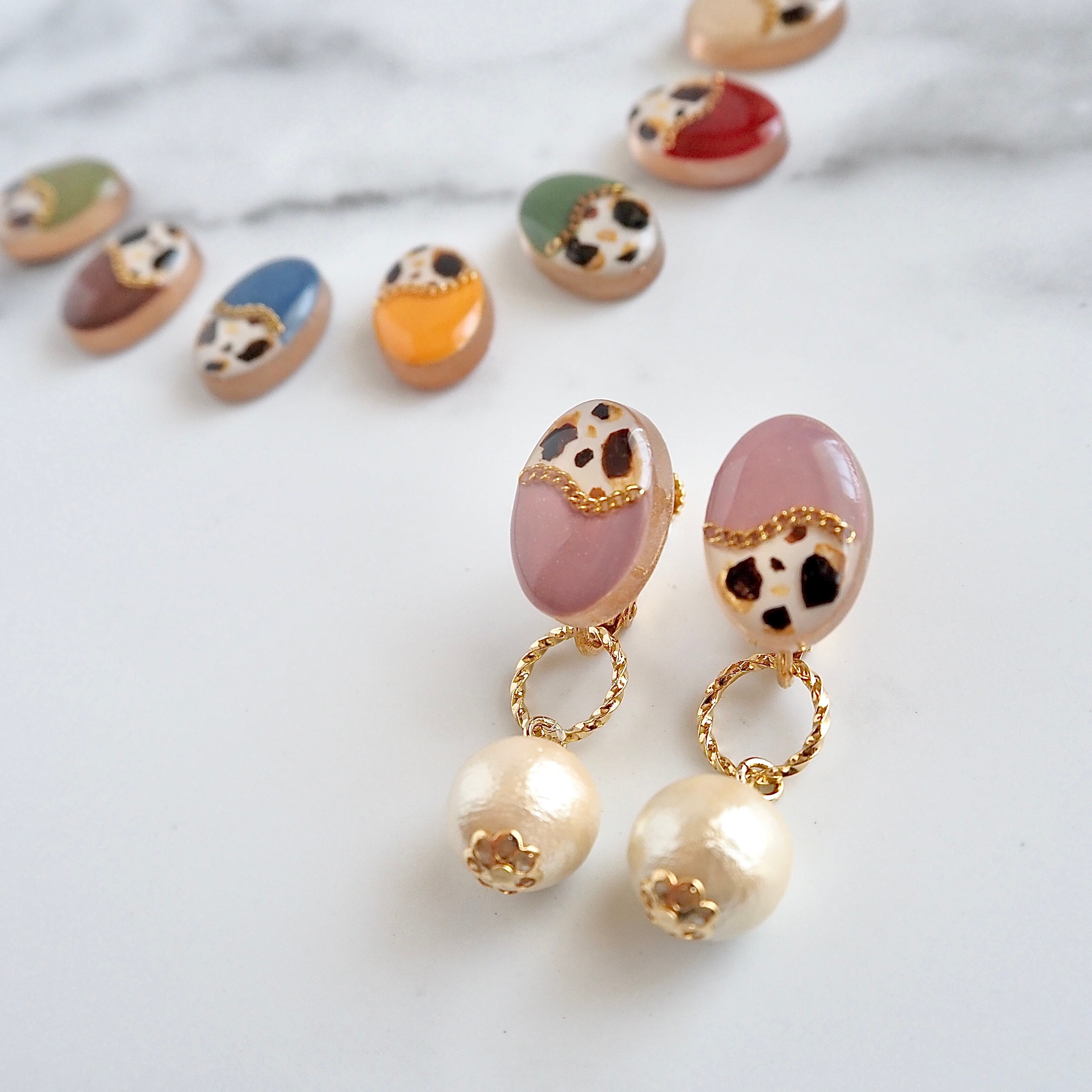 ダルメシアン×深みのある秋冬カラーの組み合わせが大人可愛いイヤリングです